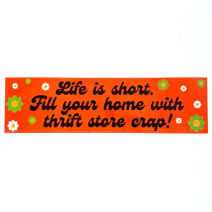 Life Is Short Thrift Store Crap Bumper Sticker
